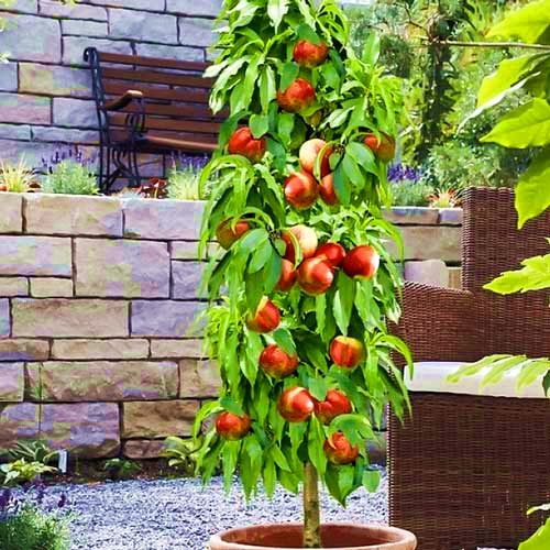 По видам саженцы колоновидных деревьев можно разделить на семенных карликов (в них присутствует «карликовый» ген) и привитых карликов (к корневой системе плодового дерева делается прививка карлика). В высоту достигают до 2,5 метров. Требуют обязательной обрезки ветвей, в противном случае вырастают традиционные плодовые деревья.